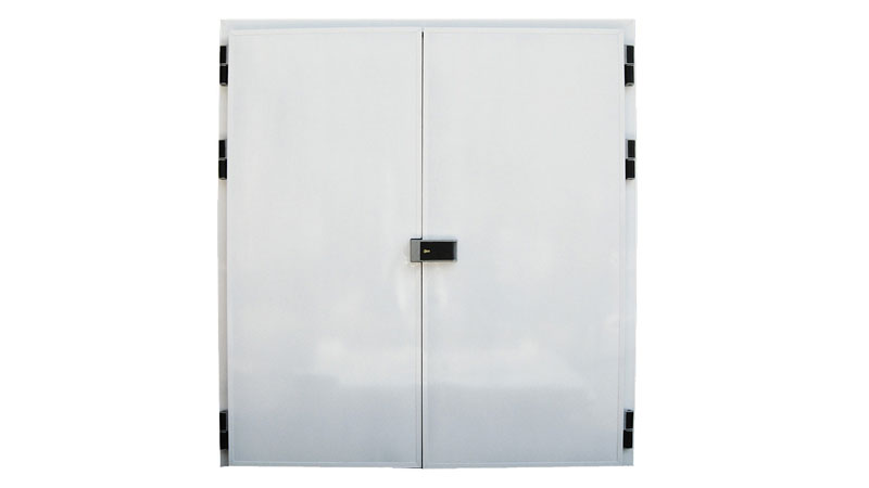 Распашные двустворчатые двери используются при ширине дверного проёма больше чем 1400 мм, что является важным для холодильных камер, рассчитанных на хранение и заморозку крупногабаритной продукции. Особенностью двери является то, что при открытой одной створке, она может использоваться, как обычная РДО дверь, для ручного переноса грузов, при открытых двух створках можно перевозить габаритные грузы на тележках. Двери РДД имеют следующее применение: